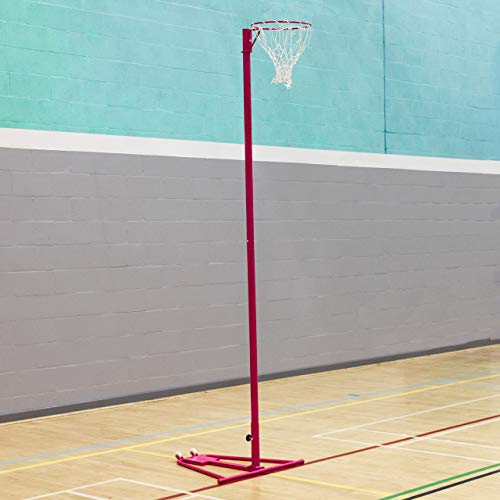 Canestro da Netball Autoportante [Ideale per Scuole] - Struttura in Accaio Galvanizzato - Canestro da Netball di Alta qualità | Tabellone, Anello e Palo | (Rosa, Coppia)