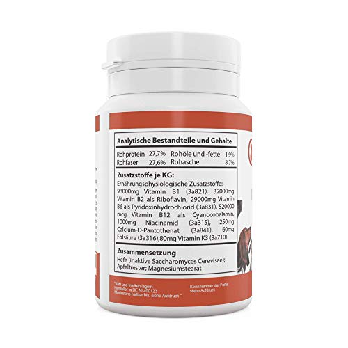 MIGLIORE QUALITÀ DI VITA - Dà ai tuoi cagnolini più energia e rafforza il sistema immunitario. La vitamina B è necessaria per una funzione salutare dei nervi. Una carenza può causare una varietà di malattie e problemi: spondylose, incontinenza, deficit visivo, infiammazione dei nervi o altre malattie degenerative o segni di usura. I sintomi di carenza possono includere frequente ingestione di feci, graffi sulla pelle, una varietà di allergie, pelo impuro e perdita di pelo.