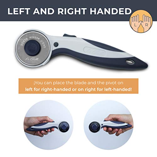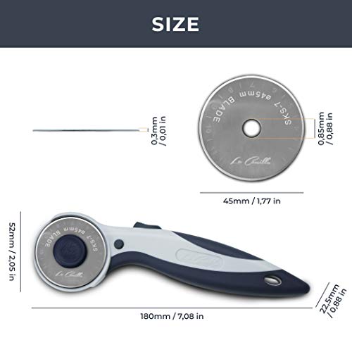 La Canilla Cutter per Tessuti Circolare 45mm, Patchwork, Sarta, DIY, Scrapbooking Taglierina di Precisione con 6 Lame di Ricambio