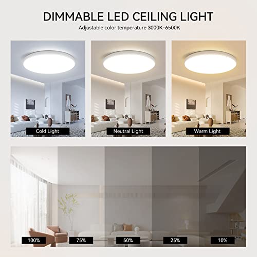 CANMEIJIA Plafoniera LED Soffitto Moderna Camera da Letto Dimmerabile, Lampadario con Telecomando, Lampada Bagno, 24W,3000-6500K,IP44