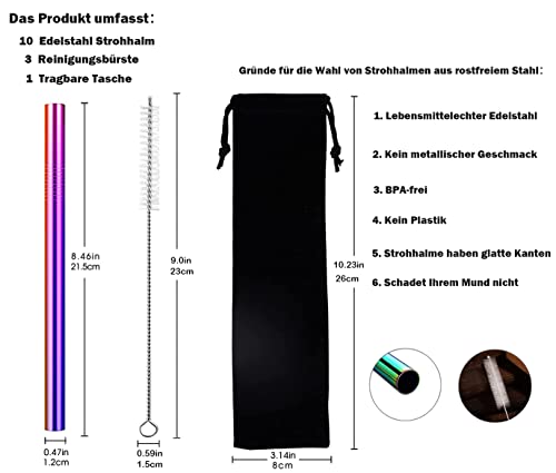 Cannucce in Acciaio Inox Con Bolla di tè,Riutilizzabili,Cannuccia Extra Larga (10 pezzi),Set di Cannucce Con 3 Spazzole per la Pulizia,Ideali per Frullati,Succhi di Frutta,Caffè - Colori Arcobaleno