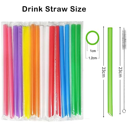 [10 cannucce di plastica colorate da 11 mm x 23 cm e 2 spazzole di pulizia da 23 cm. Le cannucce di plastica hanno uno spessore di 1 mm e un diametro interno di 11 mm.
