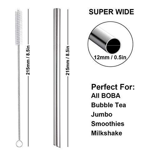 Cannucce di metallo Extra larghe, cannucce di metallo personali riutilizzabili in acciaio inossidabile 304 lavabili, resistenti ai graffi, alla ruggine e agli urti. Diametro interno da 1/2, 0,5 pollici, abbastanza largo per tutte le bevande. Buon partner di succhi di frutta, limonata, frappè, frullato, tè Jumbo Bubble Boba, cola, cocktail, bevande analcoliche e così via.