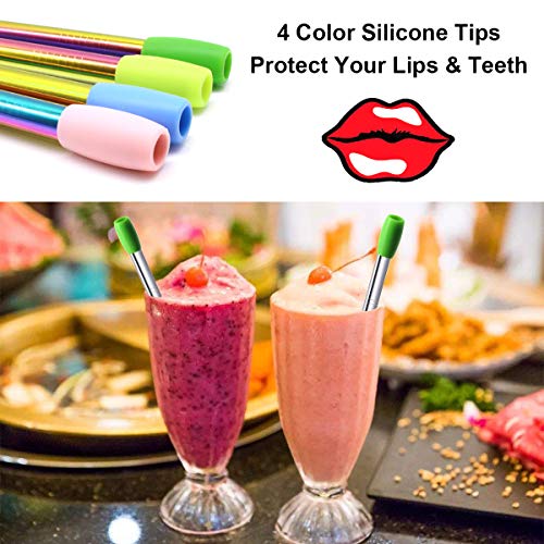 Cannucce Boba in metallo con custodia / spazzola per la pulizia / punte in silicone. Cannucce riutilizzabili in metallo ecologico. Cannuccia in acciaio inossidabile, senza plastica, lavabile in lavastoviglie, resistente e riutilizzabile. Più rispettoso dell'ambiente delle cannucce di carta di bambù di legno di silicone di vetro di plastica biodegradabile compostabile.