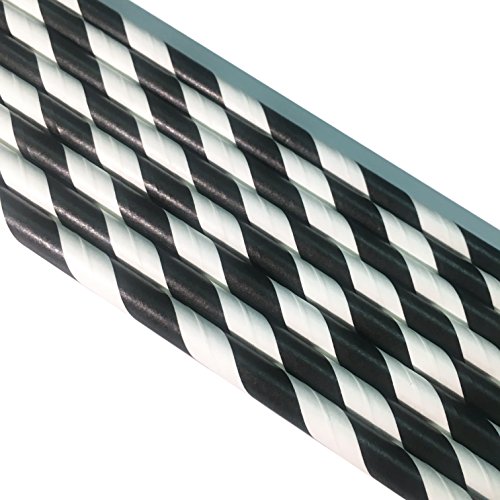 Cannucce di carta a righe di colore nero, perfette per cocktail, succhi di frutta, etichettatura degli ingredienti, barattoli e decorazioni.