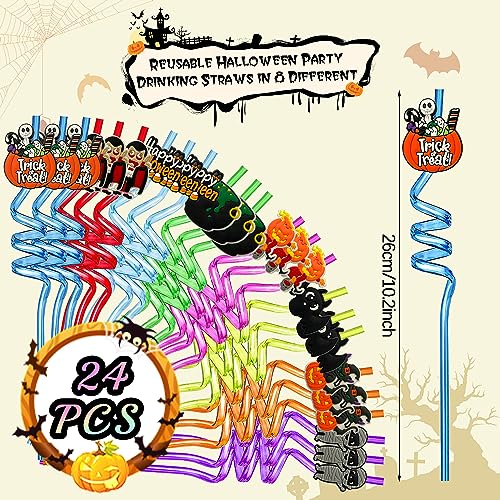 Cannucce di plastica riutilizzabili: cannucce di Halloween contengono 24 cannucce con 8 diversi motivi di cannucce di plastica di Halloween, tra cui cannucce di zucca, streghe, vampiri, happy Halloween, pipistrelli, fantasmi e altre cannucce riutilizzabili di Halloween, e sono tutte cannucce di diversi colori. Queste graziose cannucce di plastica riutilizzabili rendono i festival e le feste più colorate.