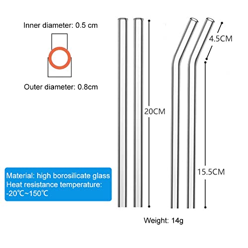 1. Questo set di cannucce di vetro contiene 6 cannucce dritte e 6 curve e 1 spazzola per la pulizia. Diametro: 8 mm
