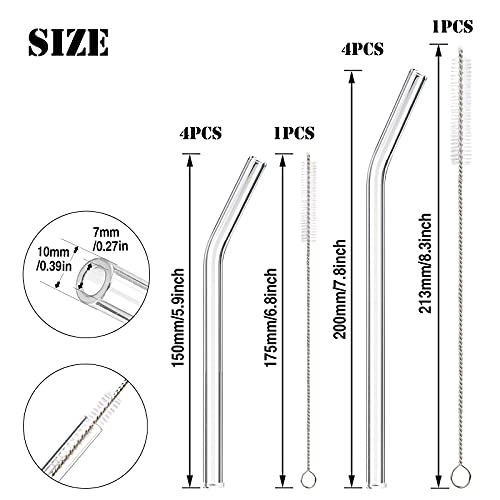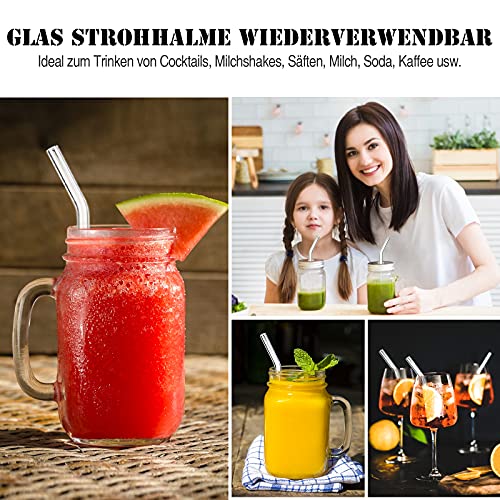 Cannucce in vetro riutilizzabili, 8 cannucce in vetro curve, 4 cannucce da 20 cm + 4 cannucce in vetro da 15 cm, cannuccia trasparente con 2 spazzole per la pulizia per cocktail, smoothie e succhi