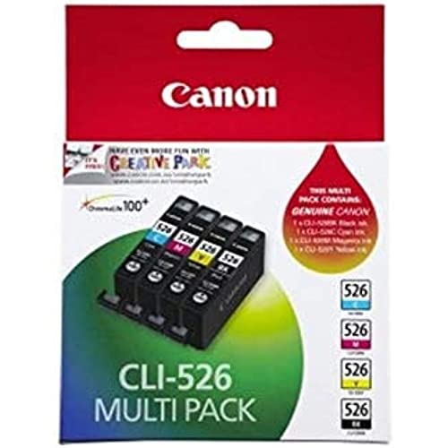 Canon CLI-526 C M Y BK VALUE Confezione da 4 Cartucce d'inchiostro (Nero Ciano Magenta Giallo) +50 fogli di carta fotografica Canon 10x15cm Originale Canon, Imballaggi in Plastica Obsoleti 2018