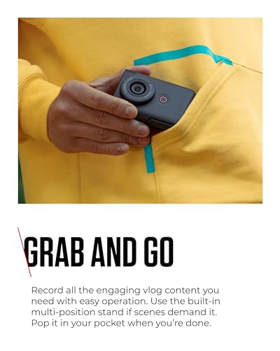 CAMERA VLOG TASCABILE ALL-IN-ONE: registra facilmente vlog coinvolgenti grazie al funzionamento a 1 pulsante, il supporto multi-posizione e lo schermo inclinabile, il tutto in un pratico formato che ti consente di metterla in tasca quando hai finito di registrare i tuoi contenuti.