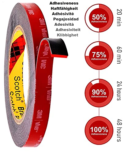 1 rotolo di 3M VHB Nastro biadesivo extra forte, lunghezza 4,5 metri, larghezza 10 mm, spessore 0,6 mm con apriscatole (1PC) di Canopus. Il metodo di incollaggio permanente veloce e facile da usare offre elevata resistenza e durata a lungo termine. Il fissaggio praticamente invisibile mantiene le superfici lisce.