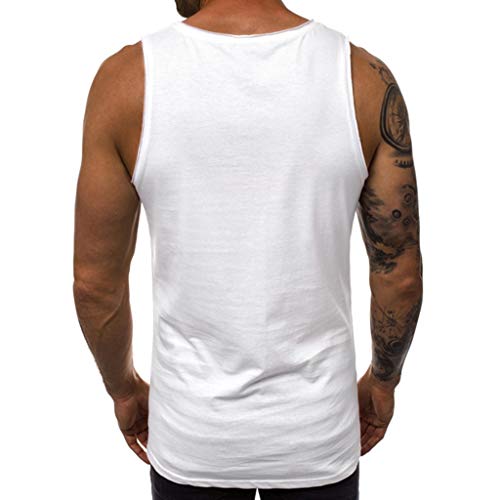 Canotta Uomo Palestra Bodybuilding Canottiera Senza Maniche Gym Shirt Tuta con Gilet Stampato Leter Patchwork Leggero Senza Maniche Contrasto (XL,Bianca)