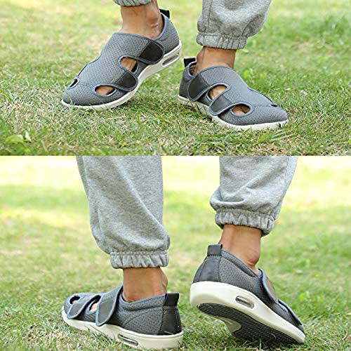 Cansats Pantofole Uomo Ortopediche Diabetic Scarpe leggere e antiscivolo con cuscino d'aria per i piedi gonfi e anziani,grigio nero,39 Pantofole Per Diabetici Scarpe Extra Larghe