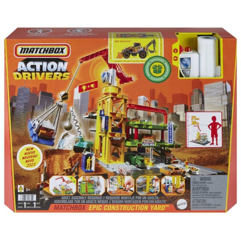 Set da gioco da cantiere e garage Matchbox (altezza: 51 cm) con accessori ed effetti luminosi e sonori. Adatto a bambini dai 3 anni.