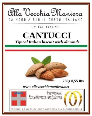 Cantucci ALLA VECCHIA MANIERA, tipico biscotto di eccellenza della tradizione toscana, creato con mandorle selezionate e ingredienti naturali, confezione da 250g