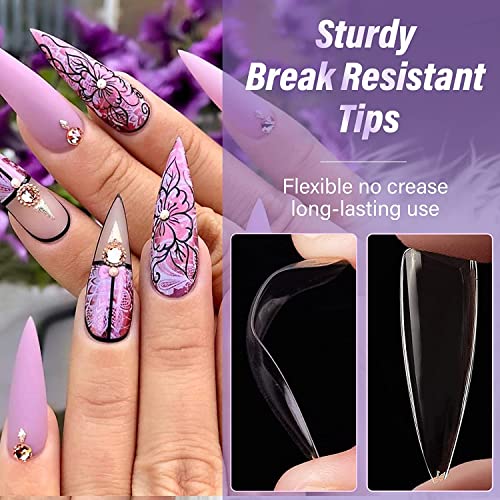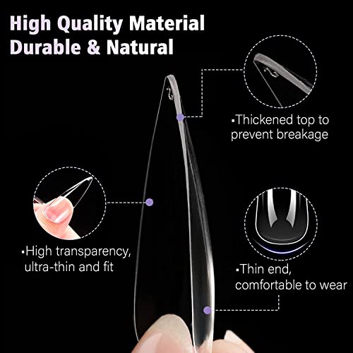 Canvalite 504 Pezzi Acrilico Unghie Finte, Trasparente Lacrima Unghie Tips Set, Unghie Finte 12 Taglie con Lime per Unghie, Clip per la Punta Unghia, Tagliagunhie, Falsi Unghie per Saloni di Manicure