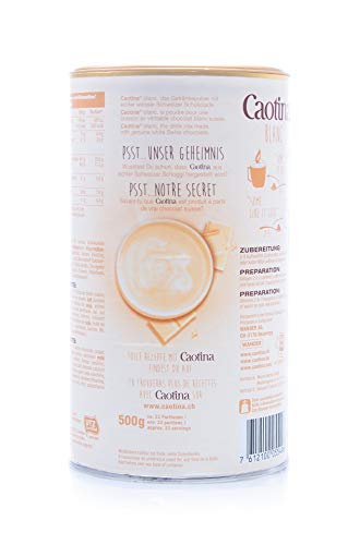 PREPARAZIONE: La cioccolata da bere Caotina può essere facilmente mescolata al latte caldo o freddo. Sciogliete 2-3 cucchiaini di Caotina Blanc in 200 ml di latte e gustate