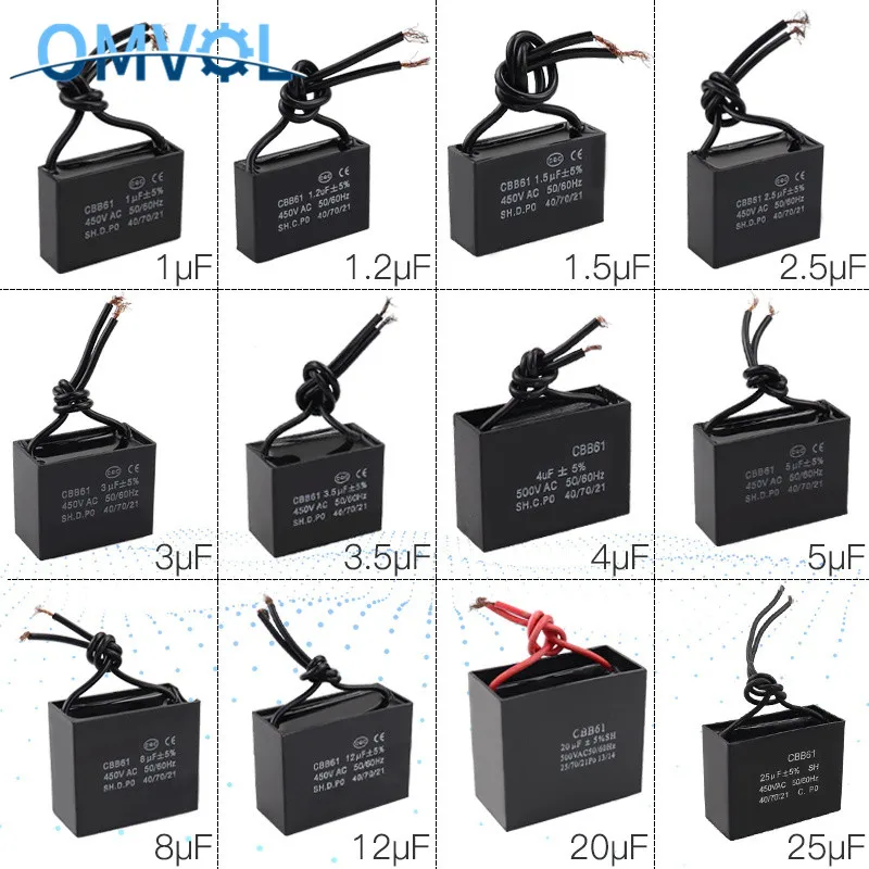 Capacitors 1UF 1.2UF 1.5UF 2UF 3UF 4UF 5UF 8UF 10UF 12UF 20UF 450V AC CBB61 Metallized Capacitor For Motor Start-up Ceiling Fan