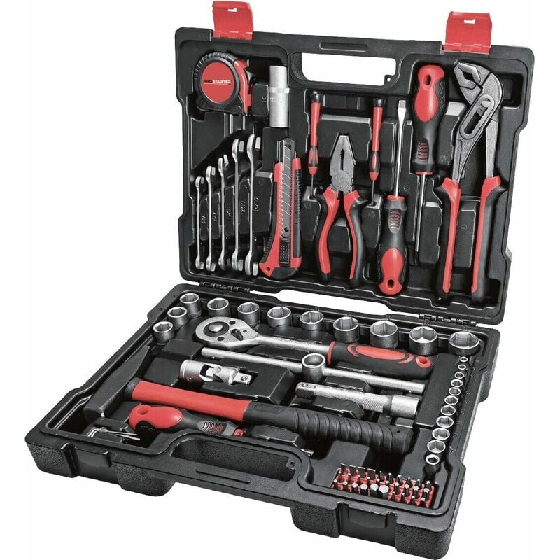 KIT DI ATTREZZI 75 PEZZI 1 pinza combinata da 150 mm 1 pinza per pompa dell'acqua da 250 mm 2 cacciaviti con impugnatura morbida 2 cacciaviti di precisione, con punta piatta e phillips 5 chiavi 6x7,8x9,10x11,12x13,14x15mm 1 flessometro da 3 m 1 cutter 18 mm 1 martello da meccanico con manico in fibra di vetro da 300 g 1 pc1/2" Manico a cricchetto a sgancio rapido 11 prese da 1/2 ", 14/15/16/17/18/19/20/21/22/23/24 mm 1 barra scorrevole da 1/2" 1pz 1/2 " prolunga da 150 mm 1 pz 1/2" giunto universale 1 pz 1/2 " candela da 16 mm 10 bussole 1/4", 4-13 mm 1 manico da 1/4" 1 pz 1/4 " 30 insertida 25 mm 3 chiavi a brugola