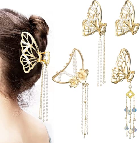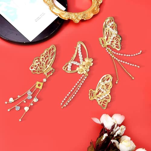Migliora il temperamento: la squisita frangia rende il fermaglio per capelli più attraente, e il motivo a farfalla cava e la decorazione con perle non solo abbelliscono i capelli, ma donano anche un temperamento elegante e affascinante. 4 stili diversi per soddisfare le vostre diverse esigenze e preferenze.