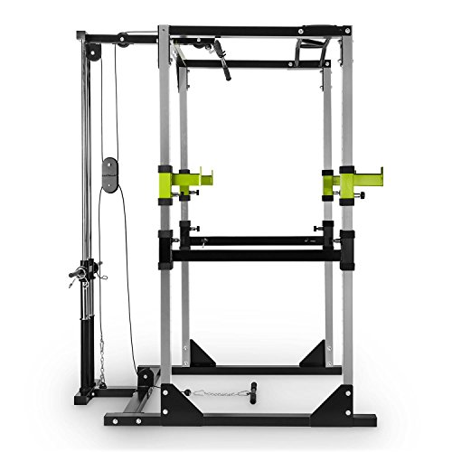 Capital Sports Tremendour PI - Power Rack Multifunzione, Torre per Trazioni Posteriore con Cavo Superiore e Inferiore, Sbarra Multigrip, 2X Safety Spotter, 4X J-Hooks, Telaio: Acciaio, Argento