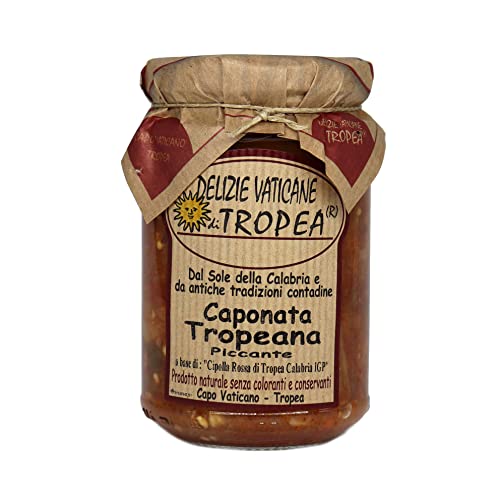 Caponata Tropeana Piccante - Prodotti Tipici Calabresi - Salsa Gourmet Artigianale - Made 100% in Italy - Senza Glutine - Delizie Vaticane Di Tropea - 280gr