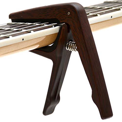Capotasto Elagon JLM effetto legno per chitarra. Realizzato con NUOVO materiale sintetico resistente LEGGERO. Capotasto a rilascio rapido per chitarra elettrica, chitarra acustica, chitarra classica, chitarra spagnola, ukulele, banjo, mandolino, mandola, ecc. Capotasto resistente di alta qualità con 1 plettro gratuito.