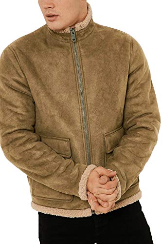 Capotto Threadbare da uomo, simil lana di pecora, foderato in pile Tan Medium