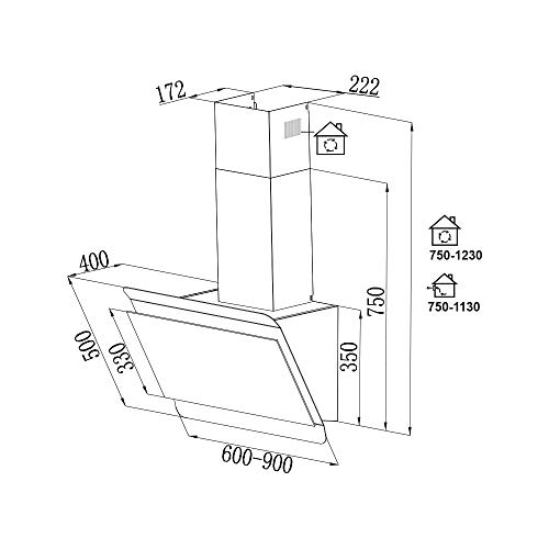 Cappa aspirante da cucina (90 cm, acciaio inox, vetro bianco, extra silenzioso, 612m³/h, illuminazione LED RGBW, 4 livelli, tasti sensore TouchSelect) DUALE90WM - KKT KOLBE