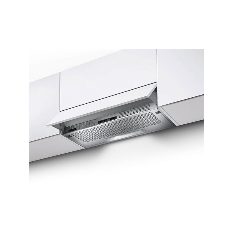 La cappa 2152 consente una facile installazione in qualsiasi tipo di pensile. L'antina frontale in posizione di riposo si allinea perfettamente al pensile in un rigoroso equilibrio di linee. Installabile in modalità filtrante o aspirante. CARATTERISTICHE TECNICHE Codice 315.0547.814 Descrizione 2152 SRM LG A60 Finitura Grigio chiaro Numero motori 2 Controlli Direct Connected Illuminazione 2 Led Filtro antigrasso Metallo Larghezza (cm) 60 Capacità aspirazione punto IEC in m3/h 200 260 370 Potenza (Watt) 155 175 230 Pressione (PA) 160 280 370 Rumorosità Db(A) 58 65 72