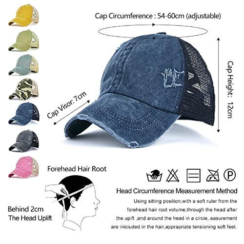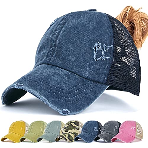 Cappelli da Baseball a Coda di Cavallo, Cappello da Baseball cap con Cotone Traspirante Regolabile Leggero Anti-Sole, Colore Unisex Vintage Messy Cross Hat (Marina)