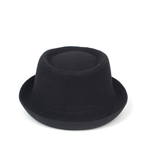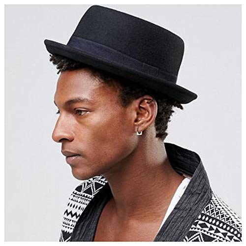 RZL Cappelli a Bombetta, 100% Lana Uomini Pork Pie Hat, Fedora Hat papà Inverno Nero for Il Signore, Piatto del Cappello di Jazz Taglia M L XL (Colore: Nero, Dimensione: 60-61CM)