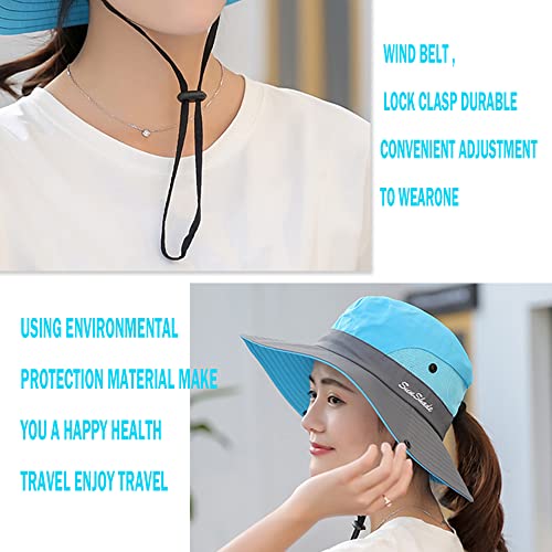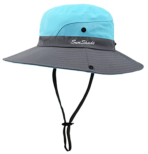Sun Cappelli Donne UV-Sheild-Protection Packable con foro coda di cavallo, Blu, M
