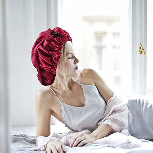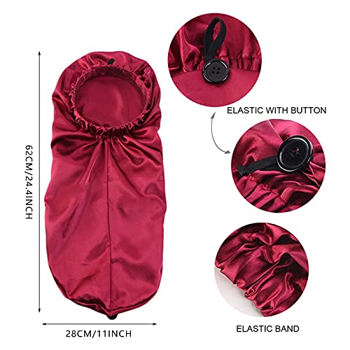Set di 2 cappelli lunghi in raso, traspiranti, in seta afro, in raso, regolabile, per la cura dei capelli, colore rosso, nero, per donna