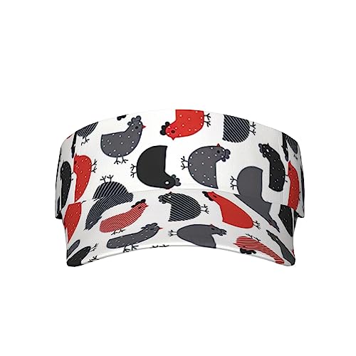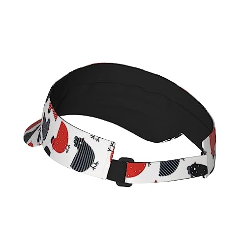Cappelli con visiera parasole sportiva traspirante con stampa a macchie di mucca cappello da baseball regolabile superiore vuoto per spiaggia piscina golf tennis, Pollo creativo del fumetto, M/taglia