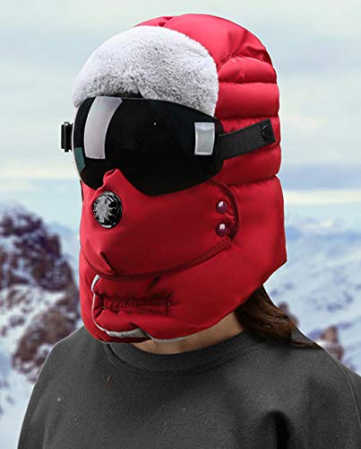 Cappello da aviatore unisex all-in-one con occhiali staccabili, con risvolti per l'inverno, per sci, snowboard, scaldacollo per donne e uomini, Rosso