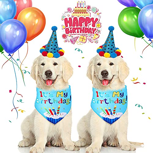 Set Cappello e Bandana per Cane, Cappello Compleanno per Cani Gatti, Buon Compleanno Bandana Sciarpe, Cani Feste di Compleanno Decorazioni, Usare per Cane Festa di Compleanno (Blu)