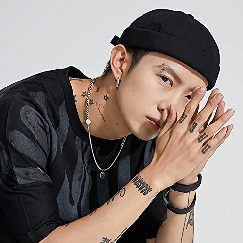 Cappello Beanie Docker,Cappello da porto a polsino arrotolato con cappuccio senza oro,Retro Strapback Docker Cap - nero - M