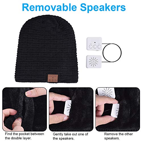 Cappello Bluetooth Regali Natale, Cappello Uomo Invernali con Cuffie Bluetooth, Idee Regalo Uomo Donna Berretto Bluetooth Cuffie Integrate e Microfono, Caldo e Morbido Cappello, Nero,Taglia Unica