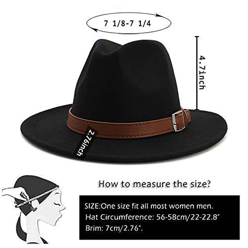 Cappello classico Fedora Panama a tesa larga con fibbia per cintura - Nero - Taglia unica