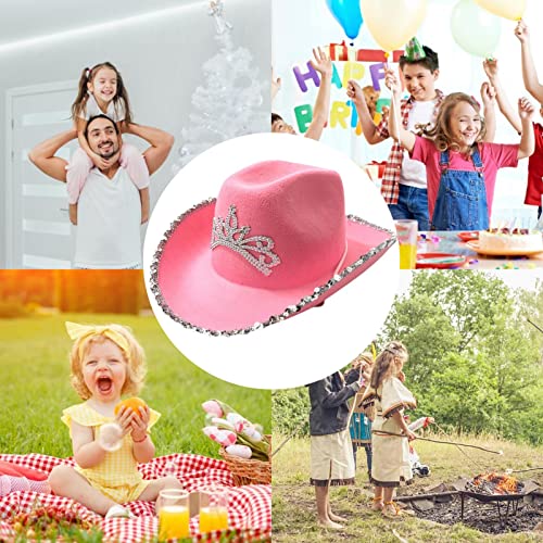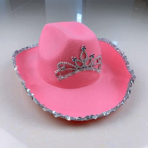 Cappello da cowboy rosa, cappello da donna, cappello da cowboy con tiara brillante, cappello da cowgirl, accessorio per costume in maschera e per le feste di Natale