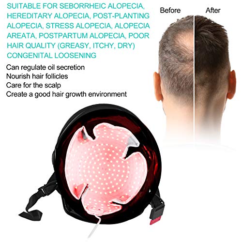 ENERGIA POTENTE: contiene 240 punti di irradiazione, sorgenti di luce distribuite scientificamente in modo uniforme, tutte che coprono il cuoio capelluto, la lunghezza d'onda di emissione della testa è accurata, dando energia più potente ai follicoli piliferi per ottenere l'effetto della crescita dei capelli. 3 marce di regolazione dell'energia, interfaccia USB, luminosità regolabile, assenza di raggi ultravioletti, nessun danno alla pelle.