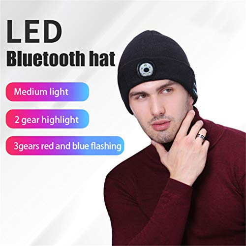N+A Cappello per Cuffie a LED con Luce, Cappuccio per Lampada Frontale, Cappuccio per Cappuccio Bluetooth 5.0 USB Ricaricabile, Berretto Invernale Regalo per Uomo Donna