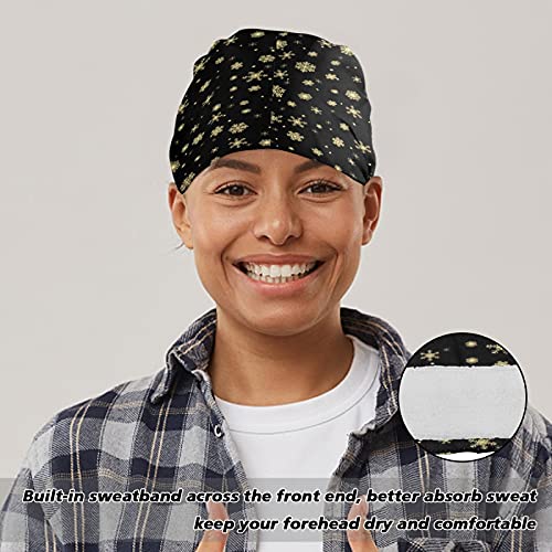 Cappello da lavoro da donna con bottone a fascia per il sudore riutilizzabile Cappelli regolabili Tie Back Hat Headwrap per adulti fiocchi di neve d'oro