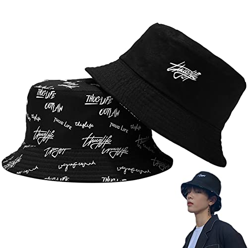 Cappello Pescatore Reversibile, Doppio lato in Cappello Pescatore, Pieghevole Cotone Estivo Cappello, Cappello Pescatore Pieghevole, Ricamato Cappelli Pescatore, Per Escursionismo, Campeggio, Viaggi
