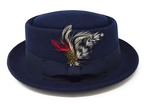 Cappello pork pie Cappello con rimovibili piuma. Navy, Grigio, Marrone S, M, grande, XL
