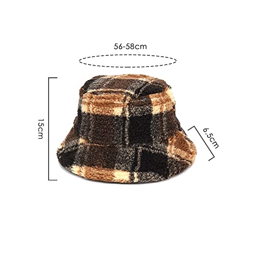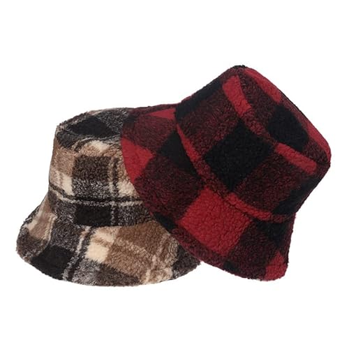 Cappello a secchiello sfocato for donna Cappello invernale alla moda a secchiello in pelliccia sintetica Cappellino da pescatore a quadri caldi unisex for donne adolescenti e ragazze ( Color: Red, S