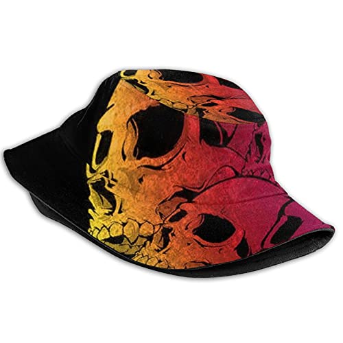 Cappello a secchiello da sole per uomo e donna, con teschio scuro e sfumato, stile spiaggia, berretto da golf, pieghevole, colore: nero