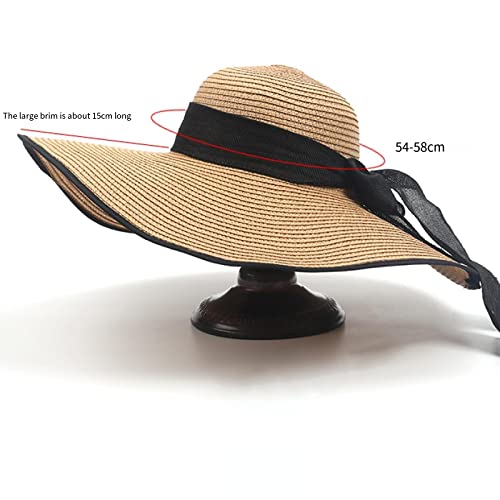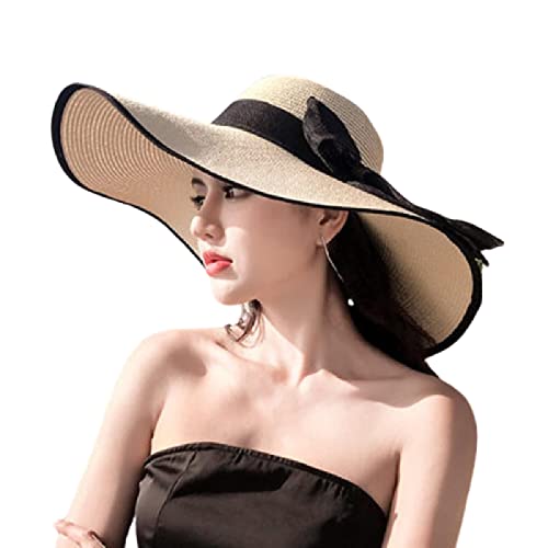 Cappello da Sole Donna, Cappello di Paglia da Spiaggia Cappello Grande da Mare Tesa Protezione Solare Parasole Vacanza Moda Cappello Grande Fresco - Regali Beige-A, Taglia unica