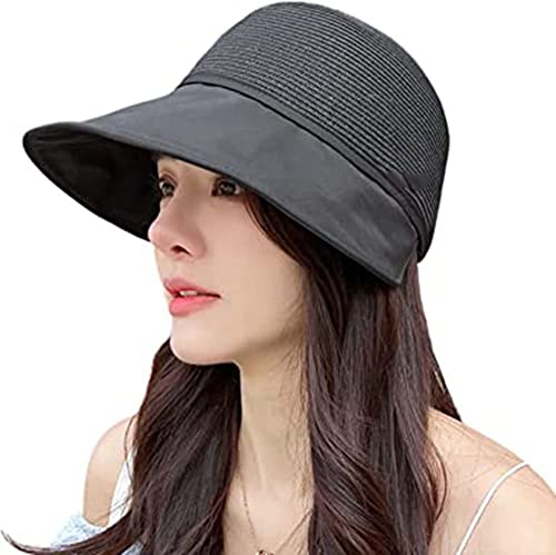 Cappello da Sole da Donna, Cappello da Donna con Protezione Solare a Tesa Larga per Gite in Spiaggia in Estate, Cappello UV da Viaggio (Black)